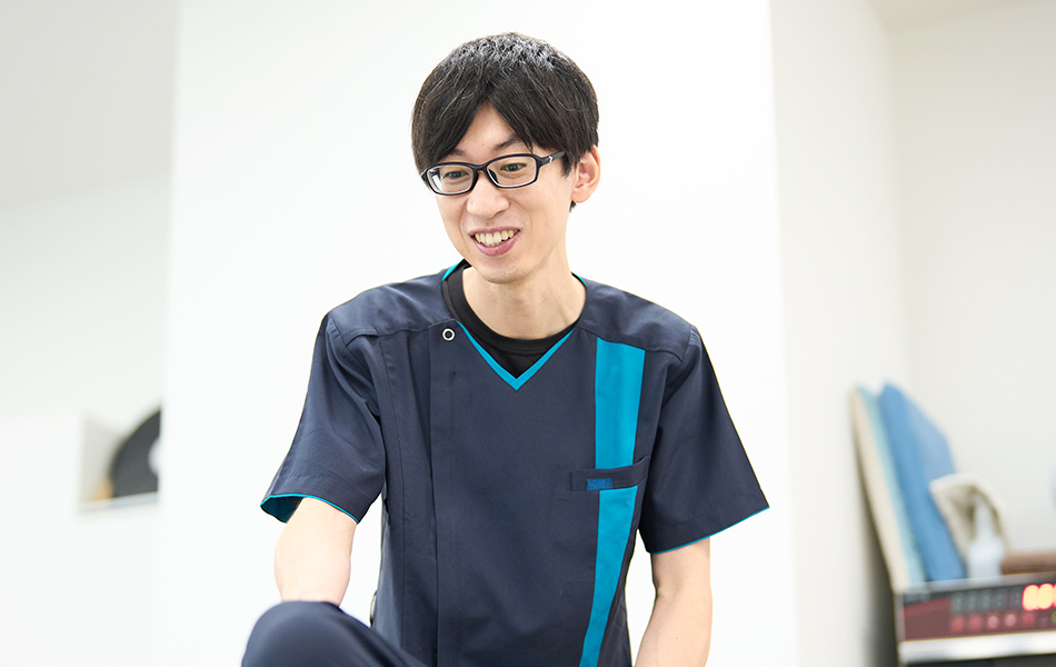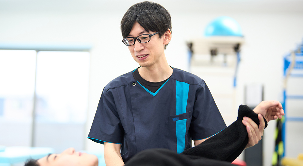 学生の頃に野球をしていて、ケガをした際に理学療法士にお世話になったんです。そのときに、「こういう仕事があるんだ」と興味を持ったのがきっかけです。医療分野を意識したことはなかったのですが、理学療法士の仕事、リハビリの重要性を知って、自分もケガをした人のサポートができるようになりたいと思い、この道を目指しました。