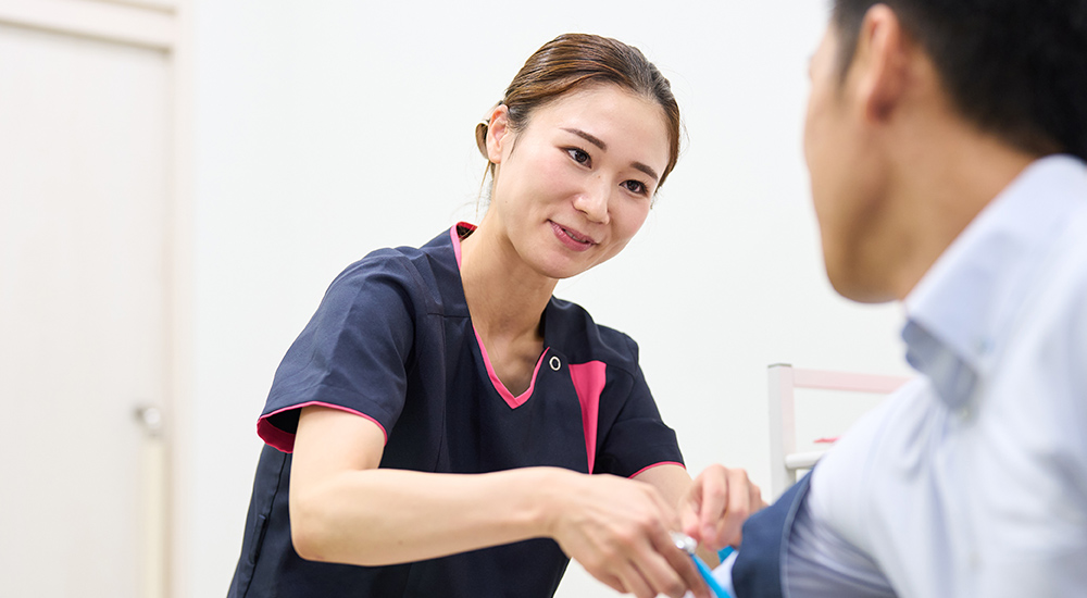 引っ越しを機に転職したのがきっかけです。院長の人柄が素晴らしいと聞いていたのと、面接のときに好印象だったのが決め手です。以前は病棟に勤務していましたが、看護師としての経験が長いわけではなく、不安な点もありました。ただ、院長からは「勉強していけば大丈夫」と言ってもらえたので安心できましたね。開業から間もないことも含めて、新しいチャレンジができるところにも大きな魅力を感じました。